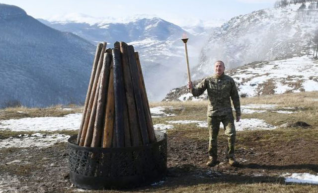 Azerbaycan Cumhurbaşkanı İlham Aliyev, eşi Mihriban Aliyeva ve kızı Leyla Aliyeva ile birlikte Ermenistan'ın işgalinden kurtarılan Karabağ'ın sembol kenti Şuşa'ya gitti. Aliyev ailesi Şuşa'nın güneyinde bulunan Cıdır Ovası'nda, Nevruz ateşini yaktı.