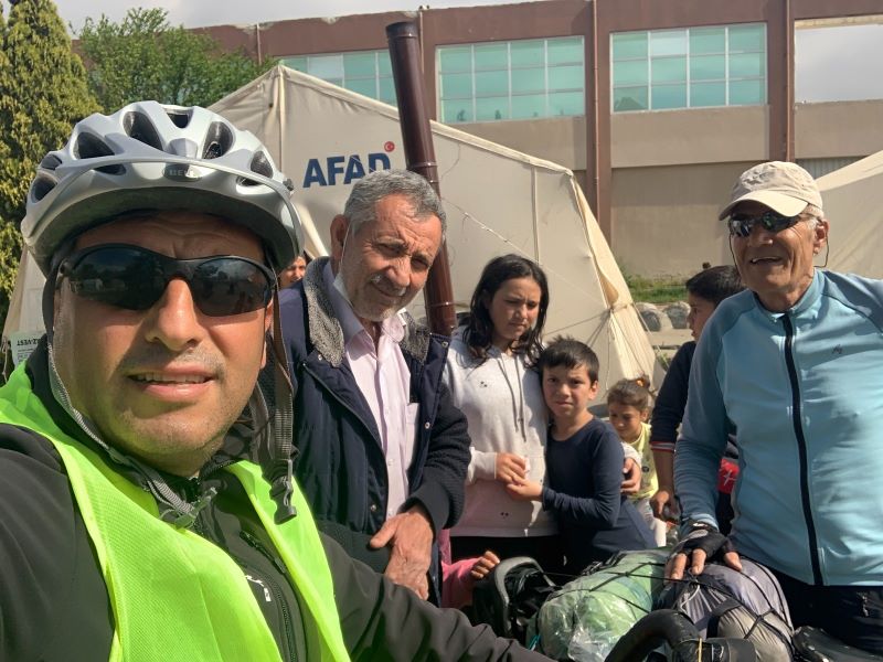Depremzedelere bisikletli moral olmak için binlerce kilometre uzaklıktan gelip depremzedelerin yaralarını sardılar.