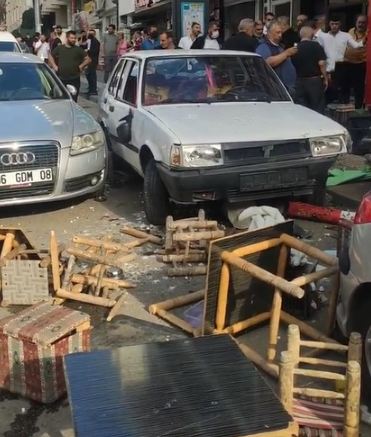 Ankara'da, fren yerine gaza basan Vedat A.'nın kontrolünden çıkan otomobil, kahve önünde oturanlara çarptı. 3 kişinin yaralandığı kaza, güvenlik kamerasına yansıdı. Sürücü ...