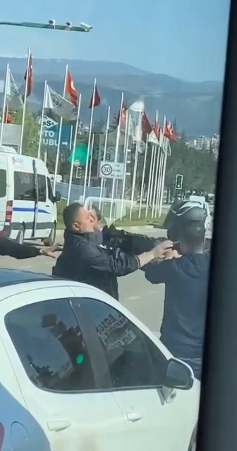 Bursa'da yol verme meselesi yüzünden tartışan iki sürücü trafik ışıklarında tekmeli yumruklu kavgaya tutuştu. O anlar başka bir vatandaş tarafından ...